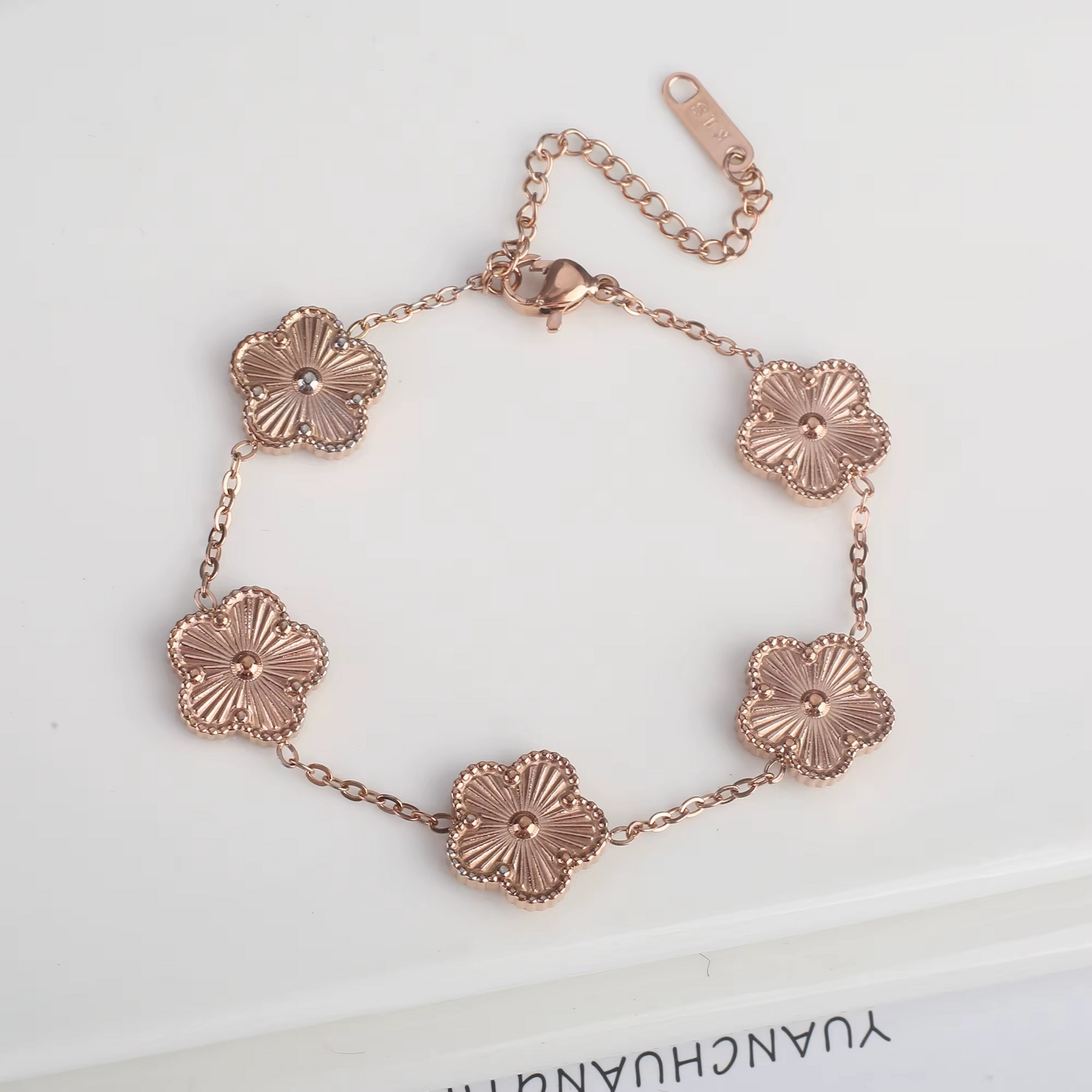 Classic Luxury Stainless Steel Bracelet Ladies Adjustable Five Flower Bracelets for Women New Fashion Party Jewelry Gifts Clover