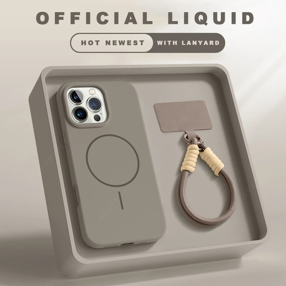 Magnetic Phone Case For iPhone 15 14 16 Plus 11 12 13 16 Pro Max Silicone Official Lanyard Magsafe Strap Protector Soft Cover